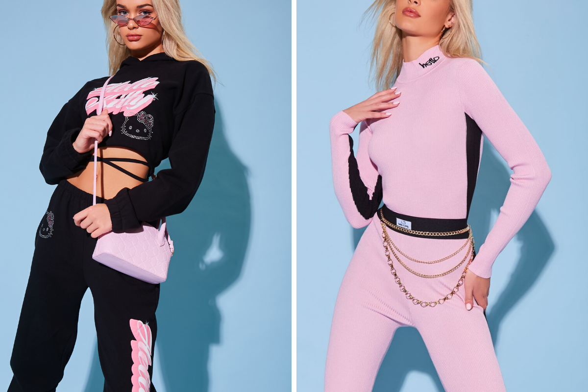 Included within the new #F21xHelloKitty collection are long-sleeved shirts, wrap-around hoodies, joggers, faux shearling pullovers, Jewelry, handbags, and much more for Sanrio fans – all Hello Kitty approved.