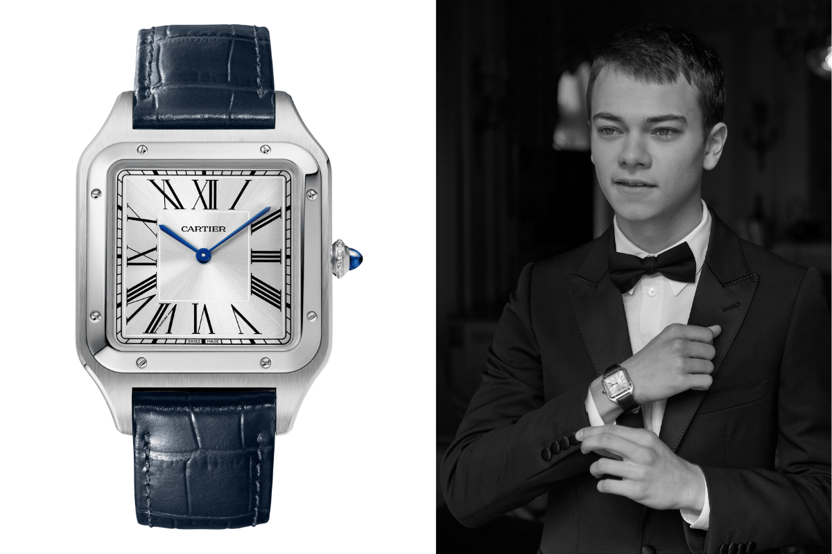Cartier Santos-Dumont watch, extra-large model, hand-wound mechanical movement, steel, leather