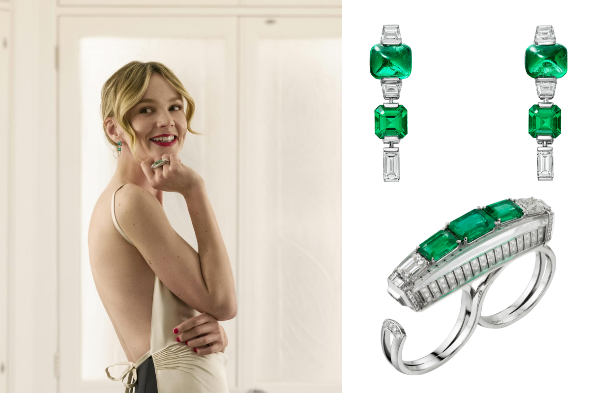 Cartier High Jewelry earrings, platinum, emeralds, diamonds