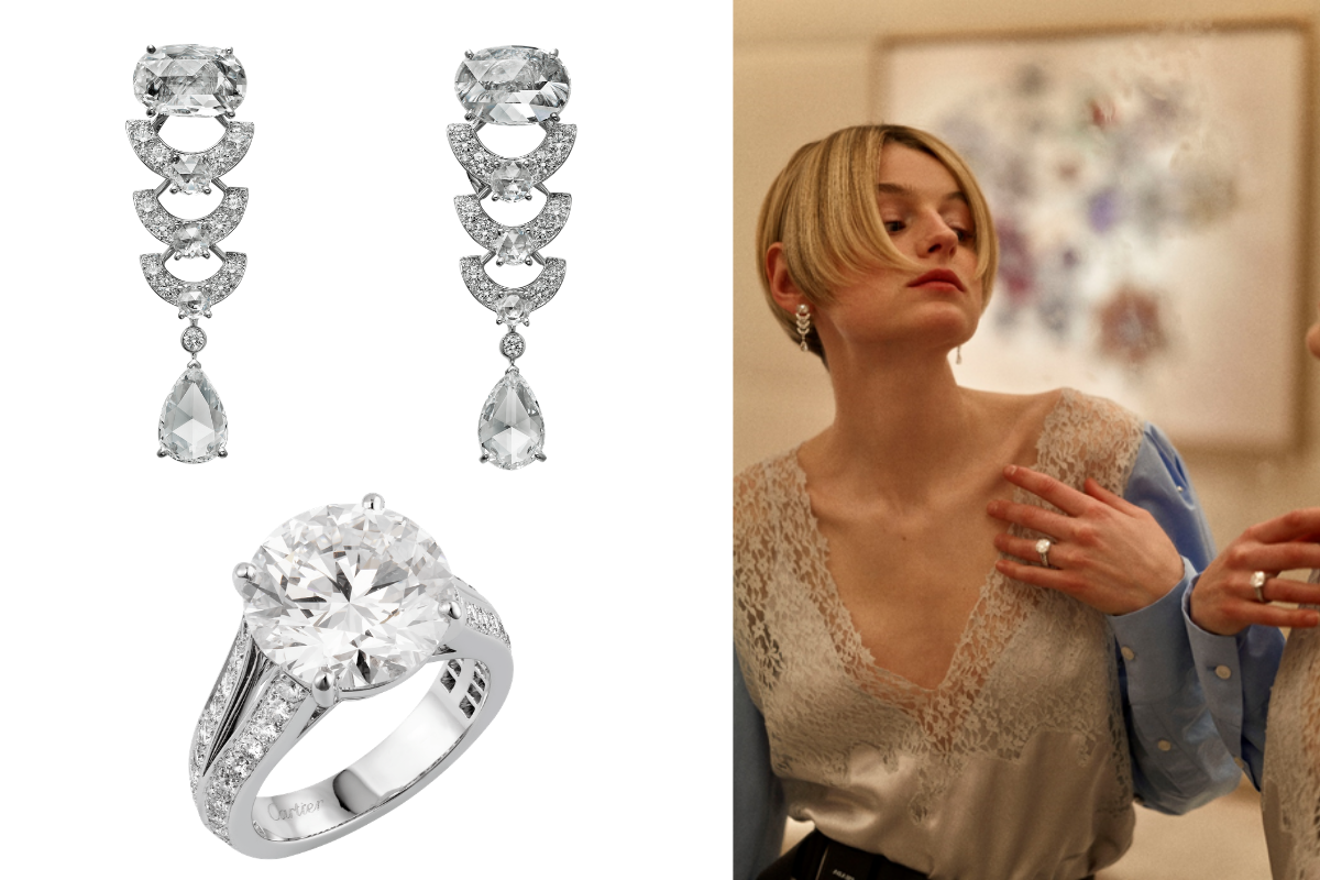 Cartier High Jewelry earrings, 18k white gold or platinum, diamonds