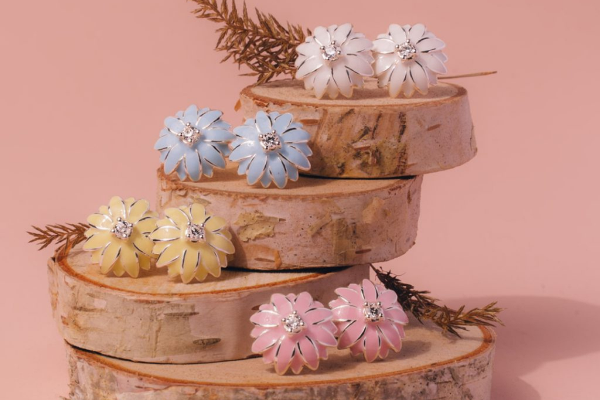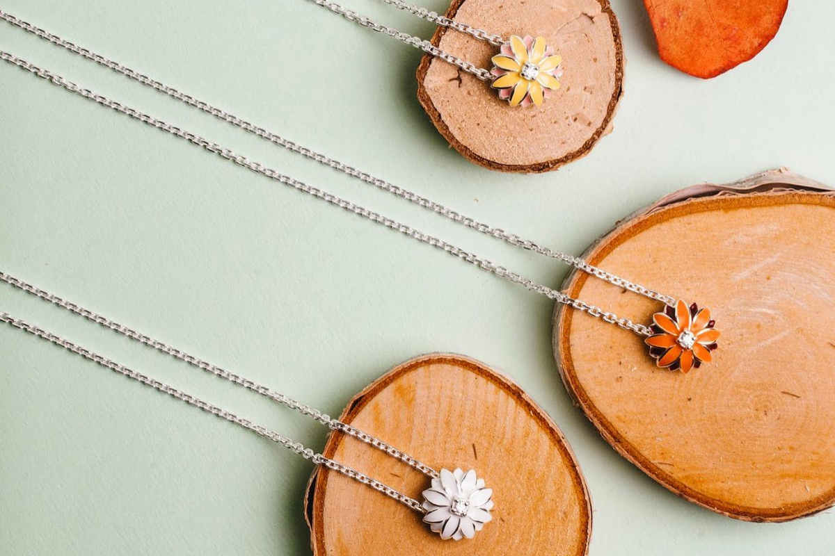 The Sunflower Collection comprises adorable Sunflower earrings in 925 Solid Silver with Cold Enamel Color and Cz, available in six different colours. For those who should you prefer a more subtle, yet more elegant piece of jewellery, select from three different gemstones – Emerald, Amethyst and Spinel – intrinsically set in White Gold-plated Silver necklaces and bracelets underneath the Gemstone Series.