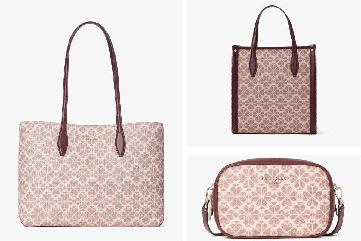 From left: Spade Flower Coated Canvas All Day Large Tote in Pink Multi (RM1,170), Spade Flower Coated Canvas Medium North South Tote in Pink Multi (RM1,080), Spade Flower Coated Canvas Infinite Medium Camera Bag in Pink Multi (RM1,080)