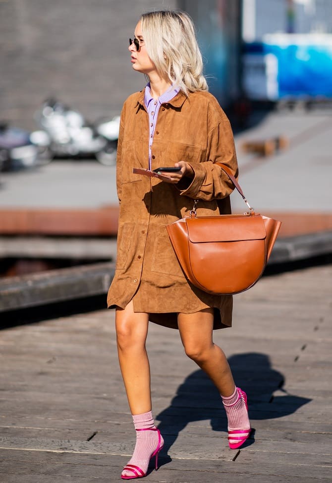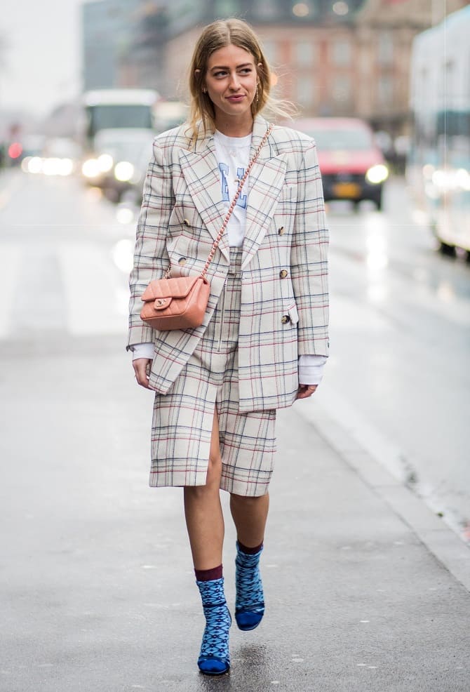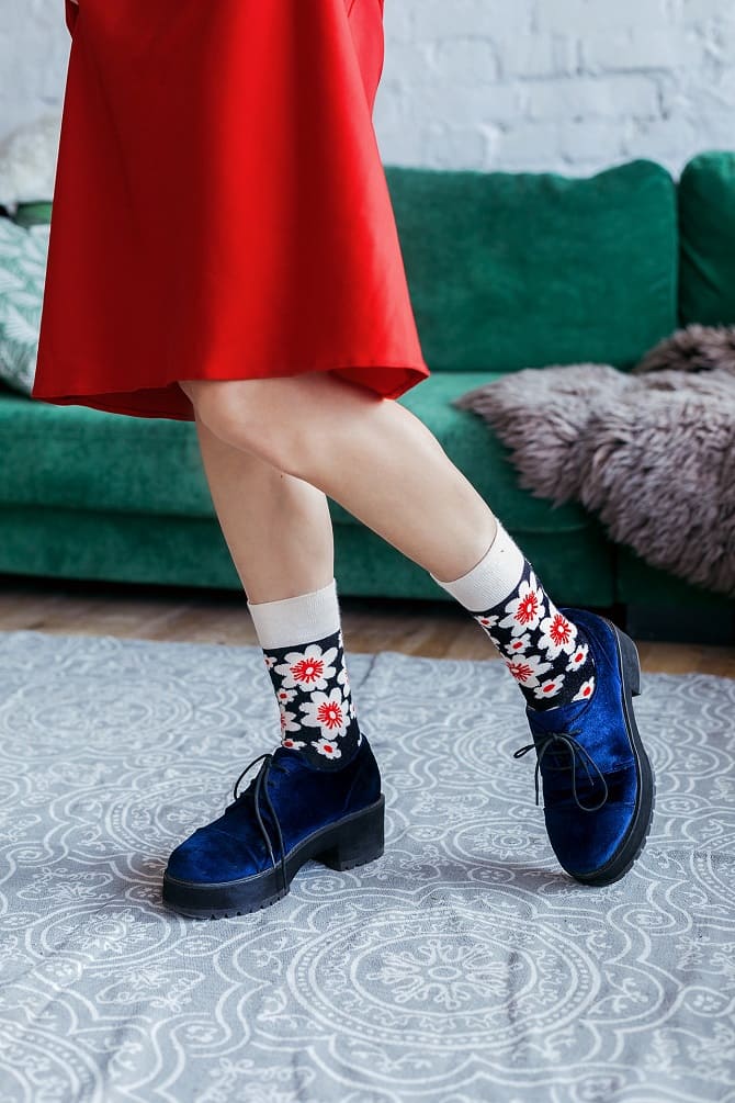 But and in fashion in 2022 are socks with prints, shoes and sandals match them. You'll make a bright accent in your image.