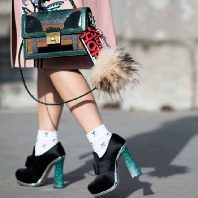 High tube socks are in fashion, which will not be hidden, but clearly visible underneath the shoes. They appear great with mini skirts as well as culottes.