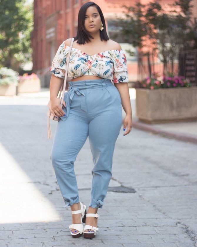 Modern fashion trends allow overweight women to put on crop tops combined with high-waist trousers, skirts or jeans. In the spring and summer of 2022, girls with a beautiful proportional figure not only can but should try on such things. Another trendy thing of 2022 is really a corset. If you wish to emphasize your breasts and waistline, choose elongated sweatshirts with dew shoulders that can be tucked into trousers.