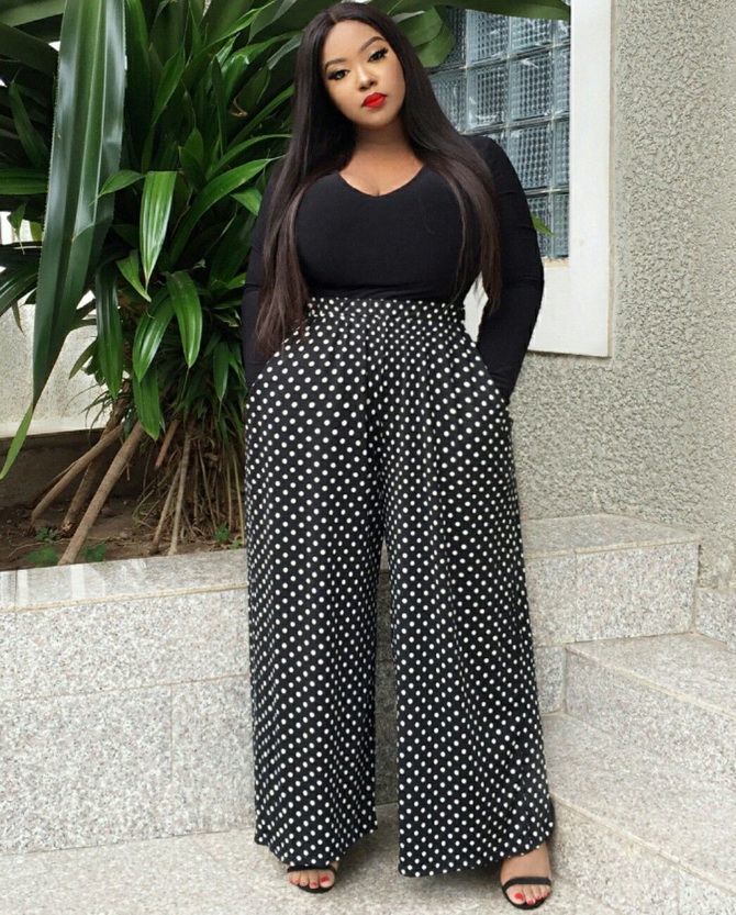 There is really a place for skinny trousers in the wardrobe of the woman with curves, because such a cut helps make the image more neat. Also, don't avoid fashionable today wide baggy trousers and Bermuda shorts. Short girls with wide hips shouldn't wear culottes. And people who are as tall as models can seem to be liberated to try on pants with ties and cuffs.