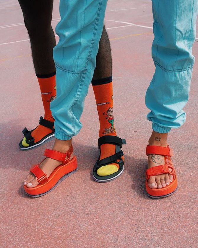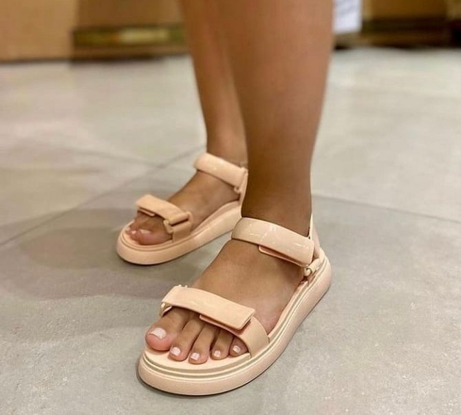Velcro sandals have been receiving feet of fashionistas since last summer and will also be popular in 2022. Their advantage is that they are extremely comfortable and provide the look a zest to the image, as well as enliven any outfit. It is worth wearing them with wide trousers, short skirts, linen shorts, in addition to with jeans of all models.