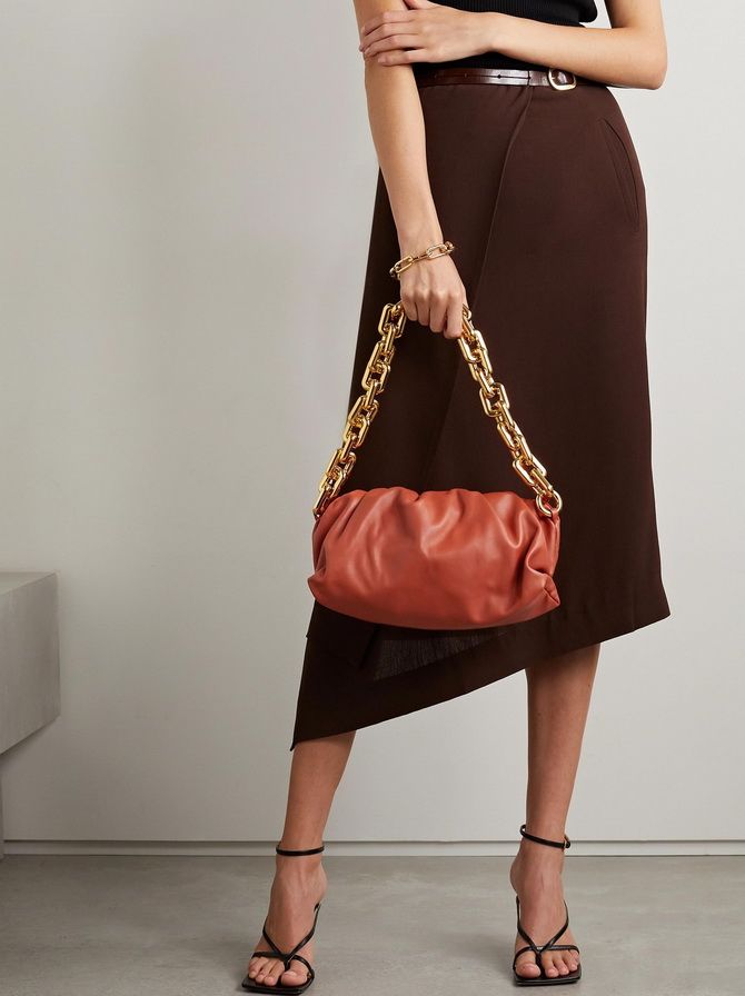 Bags with voluminous chain handles with thick links, preferably in gold-plated metal, are among the preferred by 2022. The bag itself can be leather, vinyl or synthetic. The chain is really a highlight even just in simple and easy casual bows.