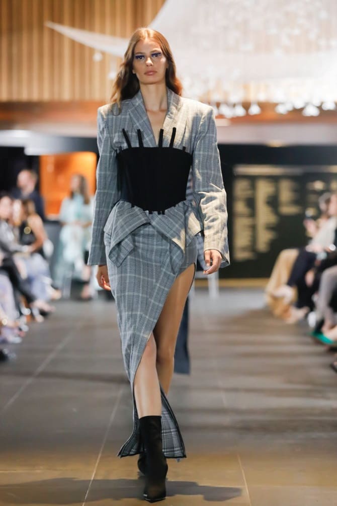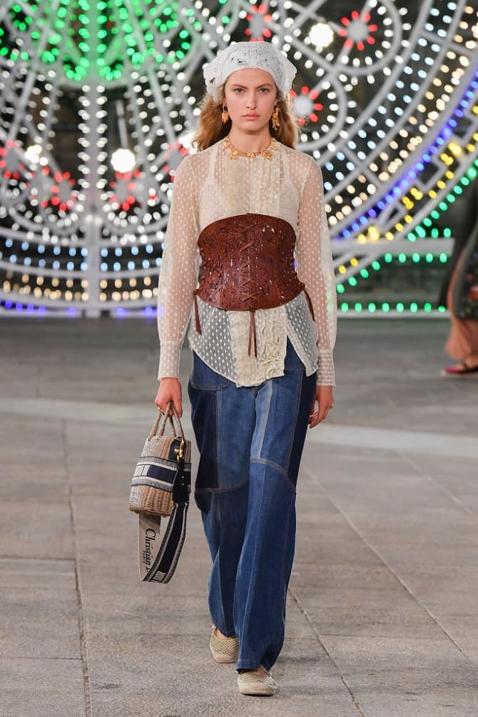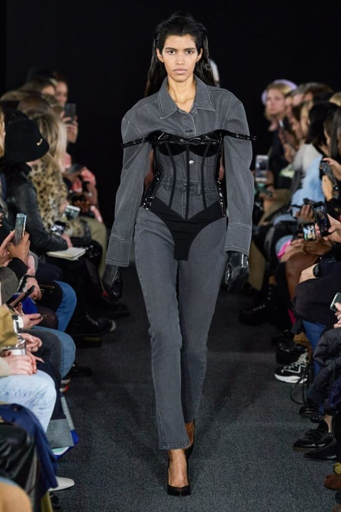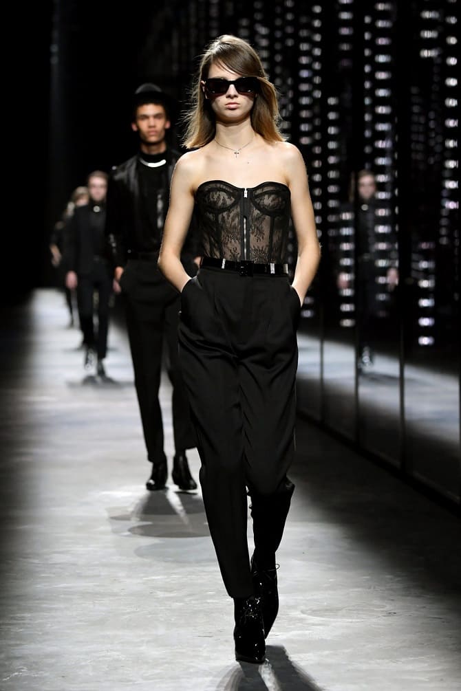 If you love classics and minimalism, pay attention to tight corsets within the same color as the bottom. For instance, corsets look great with loose-fitting trousers. But you can also pair them with long skirts.
