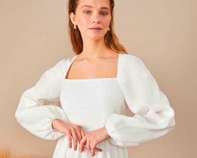 Dresses, jumper, blouse having a square neckline are perfect for women having a large bust. Such a neck lengthens the neck and visually helps make the shoulders wider. In clothes having a square neckline, the dog owner looks taller and slimmer. This vintage design gives sufficient sexiness without revealing too much skin.