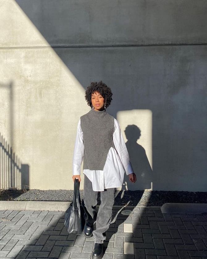 Classic laconic vests that may be worn with jeans, trousers or skirts remain relevant. You can also experiment with prints, bright colors, which will make your thing very interesting. A great choice would be knitted vests with rhombuses, floral motifs, geometric shapes.