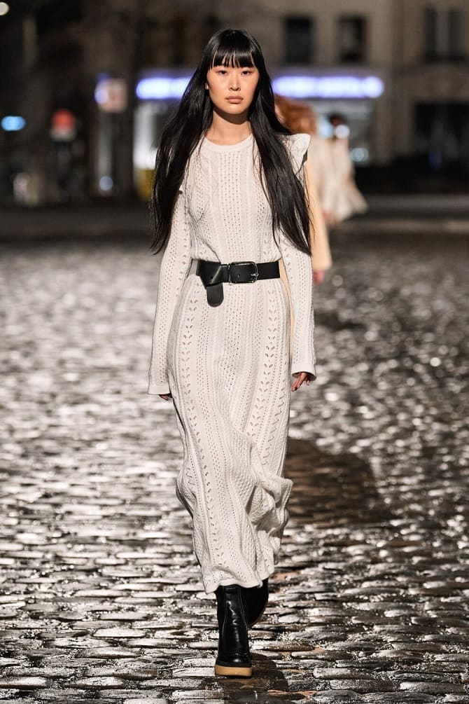 For spring, select a straight long knit dress which will emphasize the silhouette. It may be as much as the knees or underneath the knees, in soothing or brighter shades. Focus on dresses with a high neck that are ideal for cold weather. However for a hot spring, light models are suitable, which may be supplemented with accessories, including belts. Knitted dresses with floral or geometric prints remain fashionable.