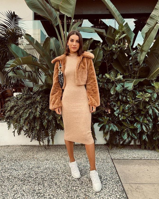 Bodycon dresses are earning a comeback, especially midi lengths. They are mainly sewn from thin knitwear, emphasize the figure and slim the silhouette. Therefore, this style would work for installments of going to the theater, to a meeting, to a restaurant. For everyday looks, select a solid color dress or with an animal print.