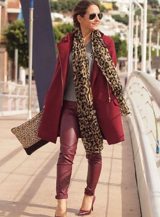 Although not everyone agrees to this kind of experiment, it's still worth a go. Marsala goes well with red, but in this case, scarlet is better used as an additional shade. For instance, you can choose accessories or shoes. Marsala should remain usually the one.