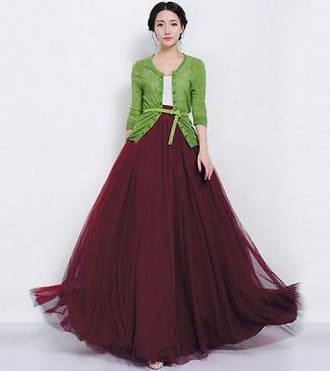 Mini, maxi, midi – you are able to select from a number of skirts in marsala color. They can be made from lightweight materials or knitwear. Leather, fabric with sequins, guipure look great.