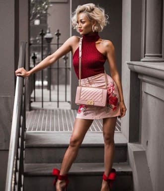 You can freely wear marsala color without combining along with other shades. In this instance, your image will be luxurious, it'll attract the interest of others. Suitable for date, casual or party.