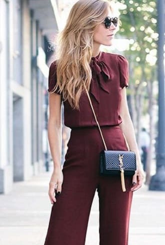 Straight, tapered, flared models in marsala color are often chosen for street style looks or business style. For harmony, select a more restrained top.
