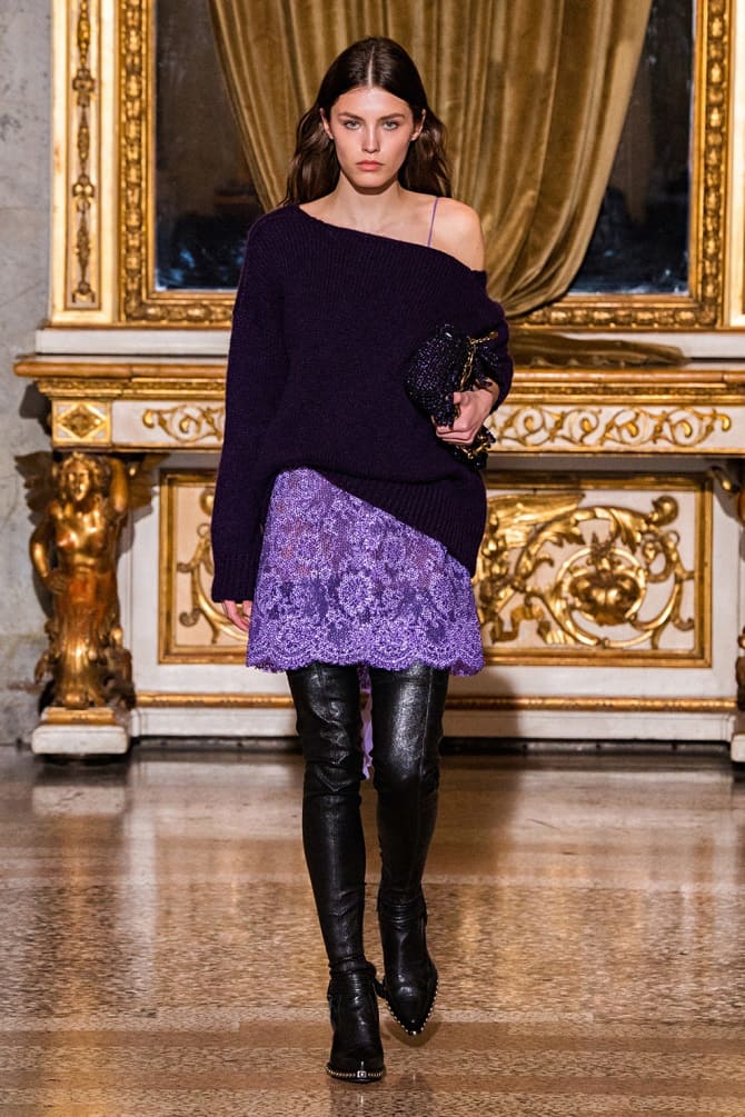 Designers also offer skirts in Very Peri color, including lace motifs. Additionally, Very Peri looks good in casual style, you can find trousers or shorts inside it.