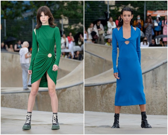 Continuing the theme of fashionable accents – in 2022 asymmetry and cutouts will be the main favorites. The asymmetrical cut dress will not leave anyone indifferent around the New Year’s holiday. Cutouts on the dress are sexy and incredibly attractive. Plus, this cutout trend continues through the next season.