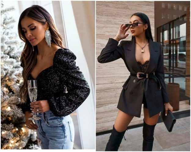 A blouse with voluminous sleeves will make an excellent company to jeans , and if you are expecting New Year’s Eve with dancing and loud toasts, placed on something insanely trendy and sexy. For example, a translucent top + jacket. Or a striped skirt with a solid top.