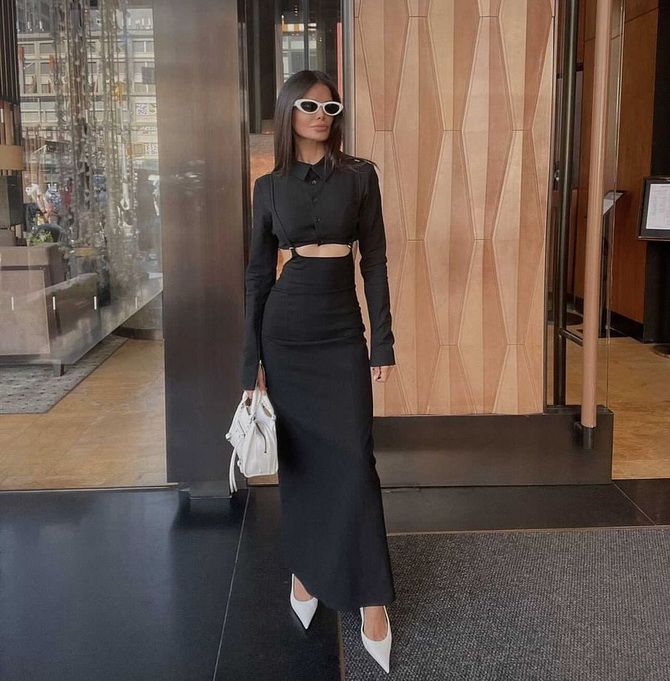 If you're an adventurous person, it would be nice to revive the black total look with bright colors. Boots or high-heeled shoes will immediately highlight you.