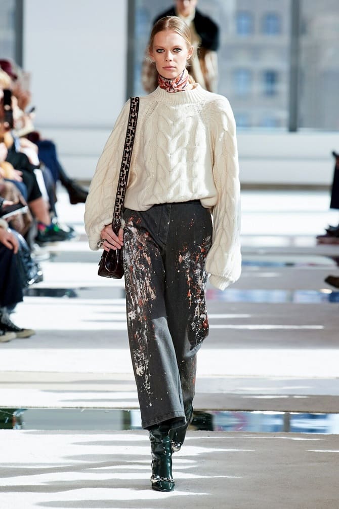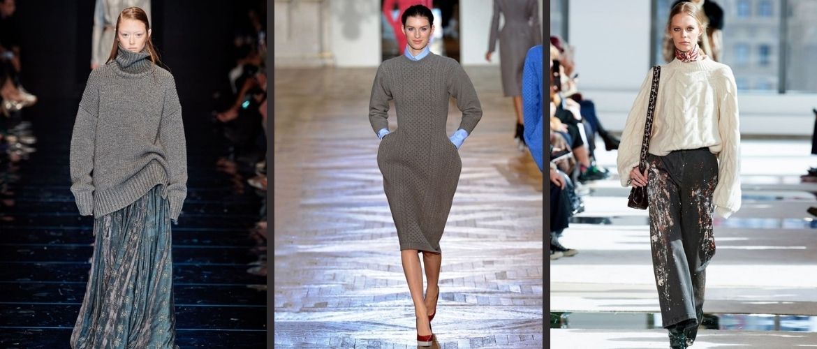 You may also choose clothes with large knitted patterns in your wardrobe: plaits, braids yet others. They seem to have been linked by hand. They can be worn with jeans, skirts and dress pants.