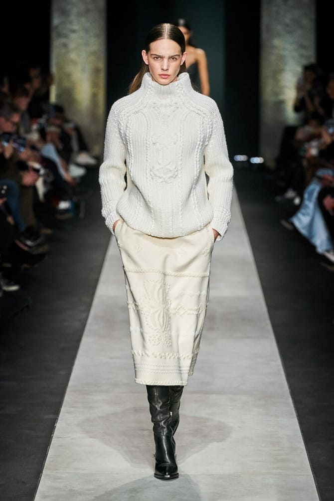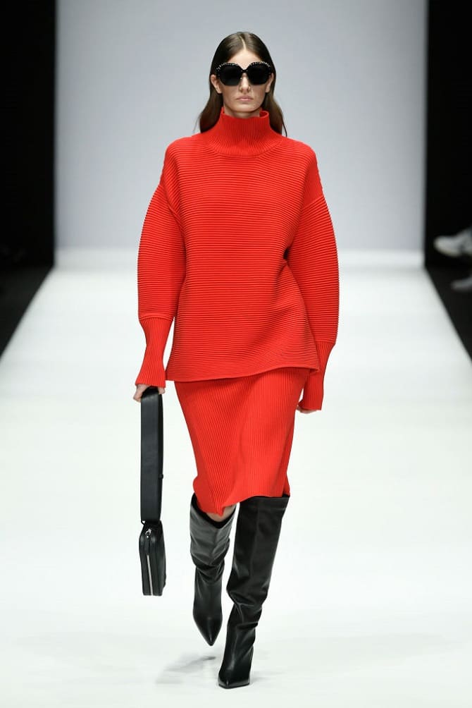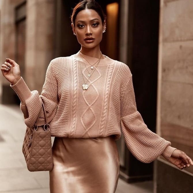 Knitted models look harmonious inside a winter wardrobe. They can be paired with a turtleneck, sweater or cardigan. But remember that they're supposed to keep you warm, so avoid miniskirts. Easier to choose options with a midi or maxi length.