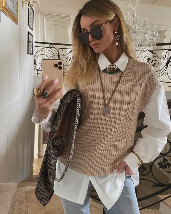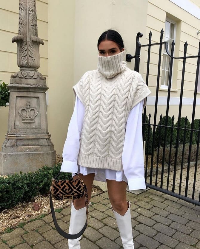 A couple of years ago, such wardrobe items were a little forgotten by fashionistas. However nowadays they are trending again. So, knitted vests were shown by designers in last year’s collections, and in addition they continue to gain popularity in the year.
