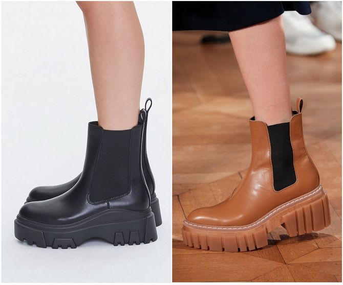 Fashionistas from different countries will go for patent leather Chelsea boots with tractor soles in 2022.