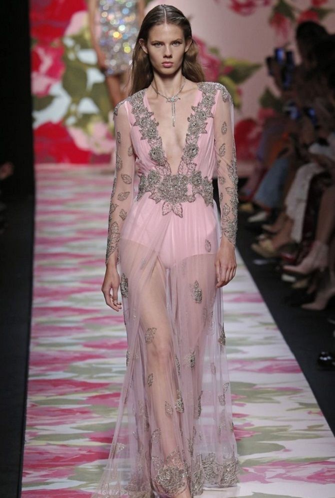 Such fashionable spring-summer dresses are presented within the collections of Valentino, Victoria Beckham, Blumarine, Dennis Basso, Givenchy.