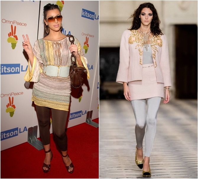 We notice unexpected ideas of images with leggings in the new assortment of Chanel Arts et Métiers 2022-2022. Playful combinations of leggings with dresses and skirts of numerous cuts are also common for Miu Miu along with other brands.