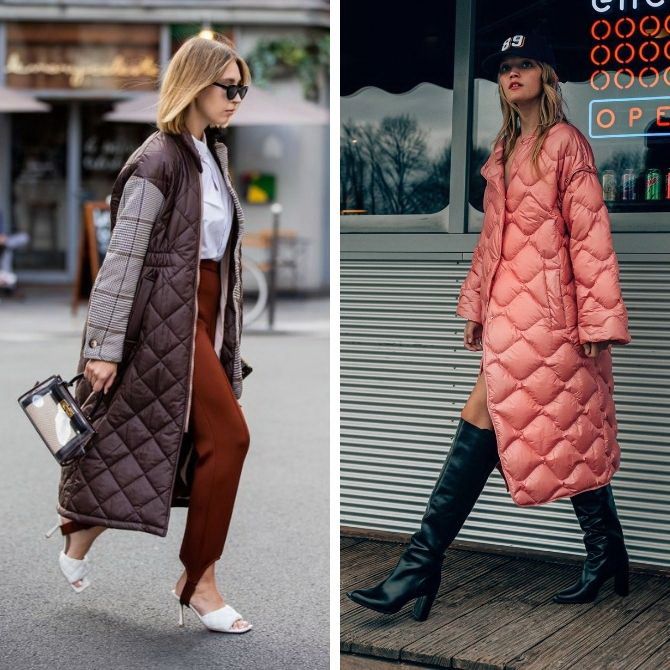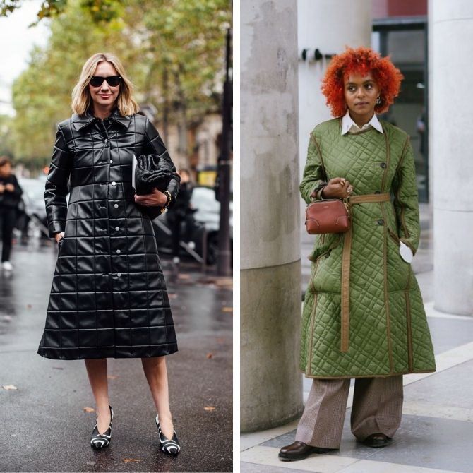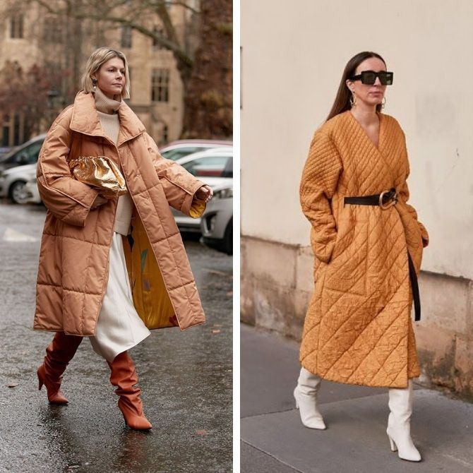 A quilted puffer coat is essential in your wardrobe this winter. The quilting trend, common among jackets, skirts and handbags, has made its way into classic outerwear. It combines the characteristics of a down jacket and a coat, consists of nylon, is water-proof, thanks to a special steeping. You can choose any thickness of the backing cloth depending on the temperature at which you will put it on. You are able to choose from different types of stitches: rhombuses, squares along with other decorative methods. Make sure to accentuate your waist with a belt. A belt on voluminous outerwear may be the hit of winter fashion 2022-2022.