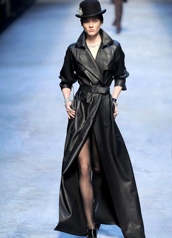 Everything looks good in black, and raincoats aren't any exception. This season both matte leather and glossy lacquer models have been in trend.