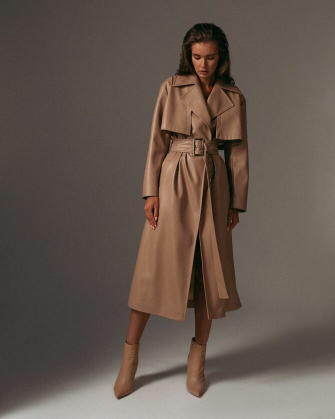 The beige raincoat is really a classic from the genre. This is the most popular raincoat color all the time and seasons. Along with beige, fashion designers also presented leather cloaks in brown shades within the fall-winter 2022-2022 collections.