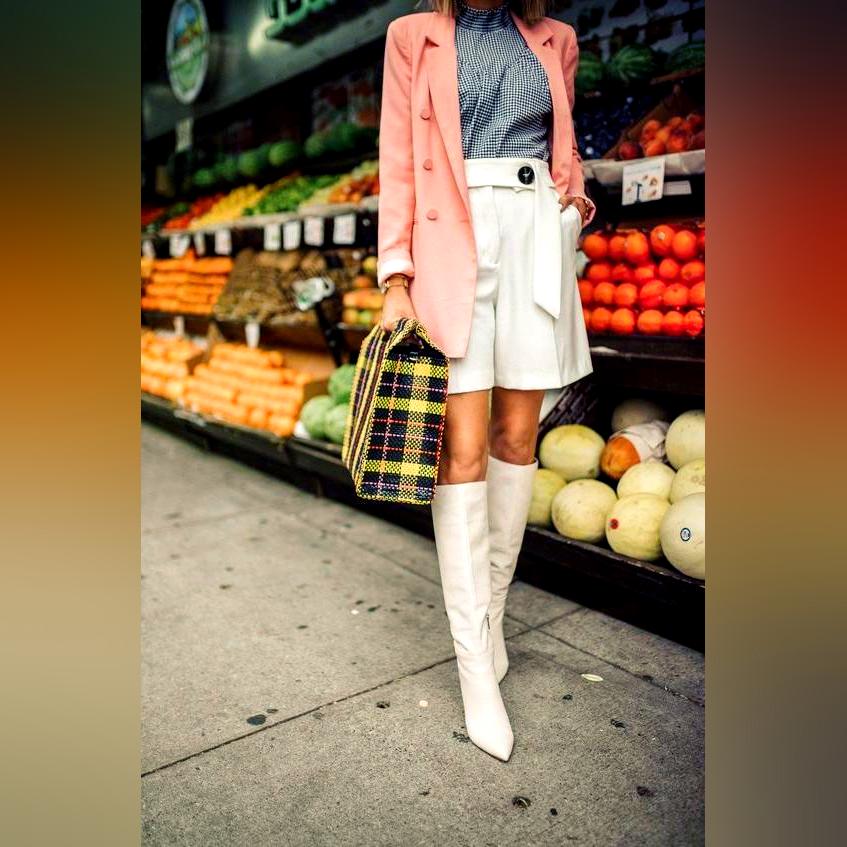 3- When attempting on different color clothes with white knee-high boots, also consider the way they look inside your outfit where you’ll wear them.