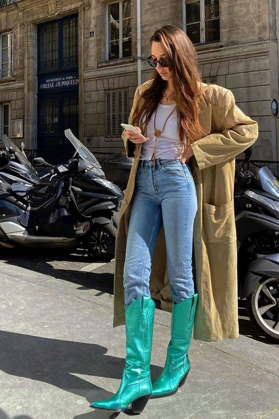 You might want to experiment with different colours and styles, as cowboy boots will go well with any outfit. As you can tell, you will find loads of options for wearing cow boy boots regularly. You can wear them with jeans and skirts, but also along with other kinds of footwear for example ankle boots or flats.