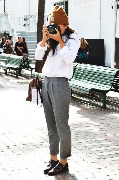 Below are several examples of grey trousers and shoes. pants have been styled differently. In the first example, the shoes look too casual to pair with grey while in the second outfit they appear too formal. The best option is to keep it nice and neutral, but nonetheless keep an eye out for trends as well as your own personal style.