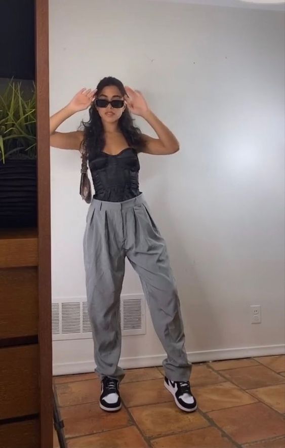 If you need to ensure that it stays really classy and straightforward, wear grey slacks with white sneakers; go classy as with the image. It is crucial that they match your suit colored very closely otherwise the entire look will be ruined.