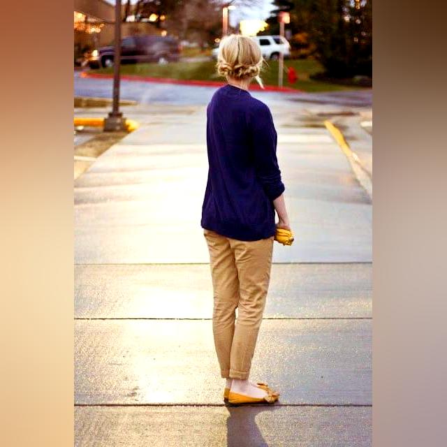 If you’re not comfortable with the idea of wearing heels together with your Khakis, you'll be able to play with simple ballet flats or sandals. Choose a pair of comfortable shoes that match the fabric and elegance of the pants. Here are a few stylish shoe suggestions for your Khakis: