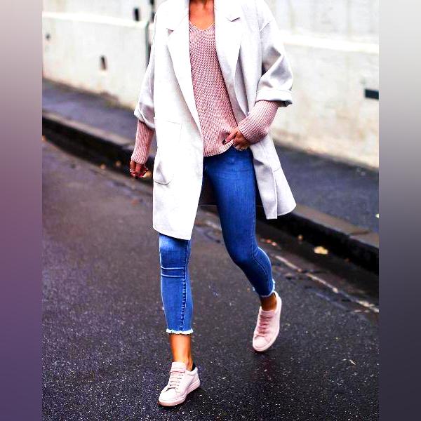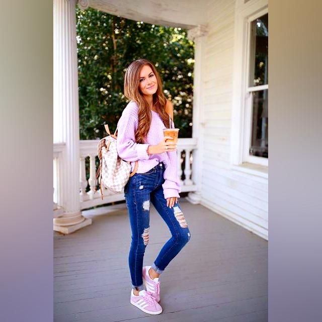 Try on a denim shirt, light blue pants and pastel colored sneakers for a new and classy look. You can wear them with a sweater in blue shade or with a few pink accessories like a necklace, bracelet or earrings. You will look so cute!