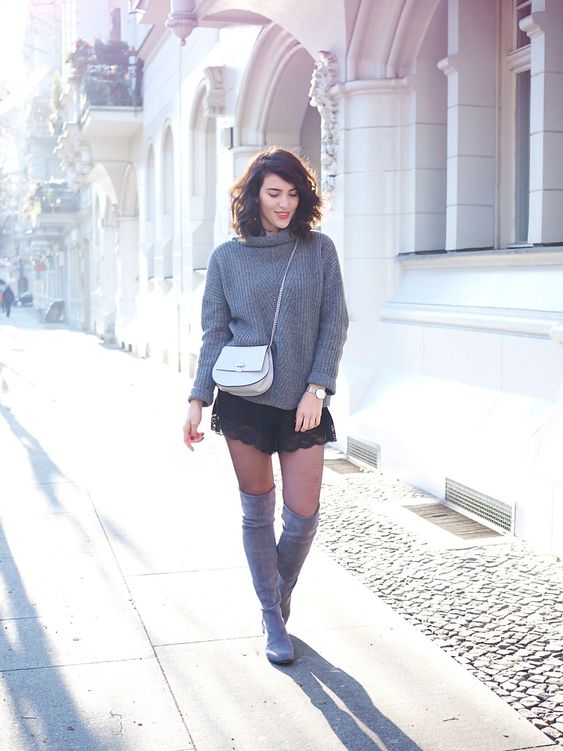 Grey is really a neutral color that's often described as sophisticated and complicated looking. Grey tends to be probably the most versatile color when it comes to coordinating apparel since it looks great with everything from casual clothing and sweaters to more formal outfits . Making the effort to figure out how to pair grey within the knee boots along with other clothes can be a fun and interesting process. Having a neutral color like grey, it is important to pay attention to the texture as well as the material count of clothing you are wearing whenever you pair grey over the knee boots by having an outfit.
