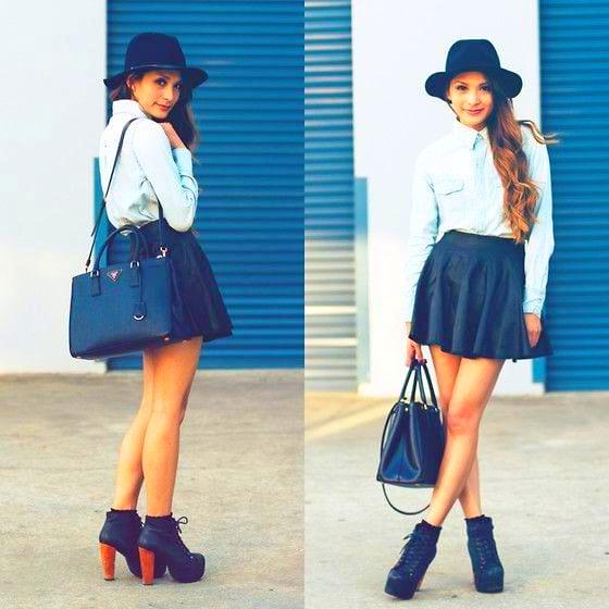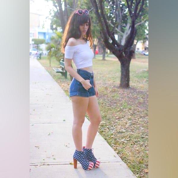 Wearing boots with denim shorts. A great summer outfit which you can either dress up or down depending on the skin tone and hairstyle. Throw in another change of tops if you want to go more casual.