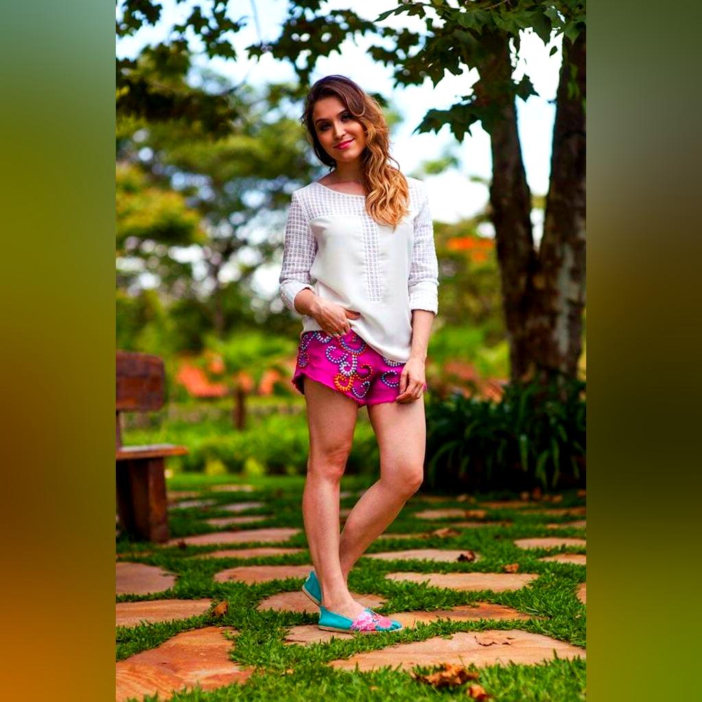 I am not sure if I can tell this outfit is sexy, but it is still very pretty and cute. The skirt looks slick due to its shiny material, but it is still very comfortable to wear. This woman wears a pink shirt that appears very soft and feminine on her body. She adds some color to her outfit with a pair of red espadrilles, so her feet seem like they stand out from the rest of the outfit. I see everything she's done because a smart move for just about any occasion.
