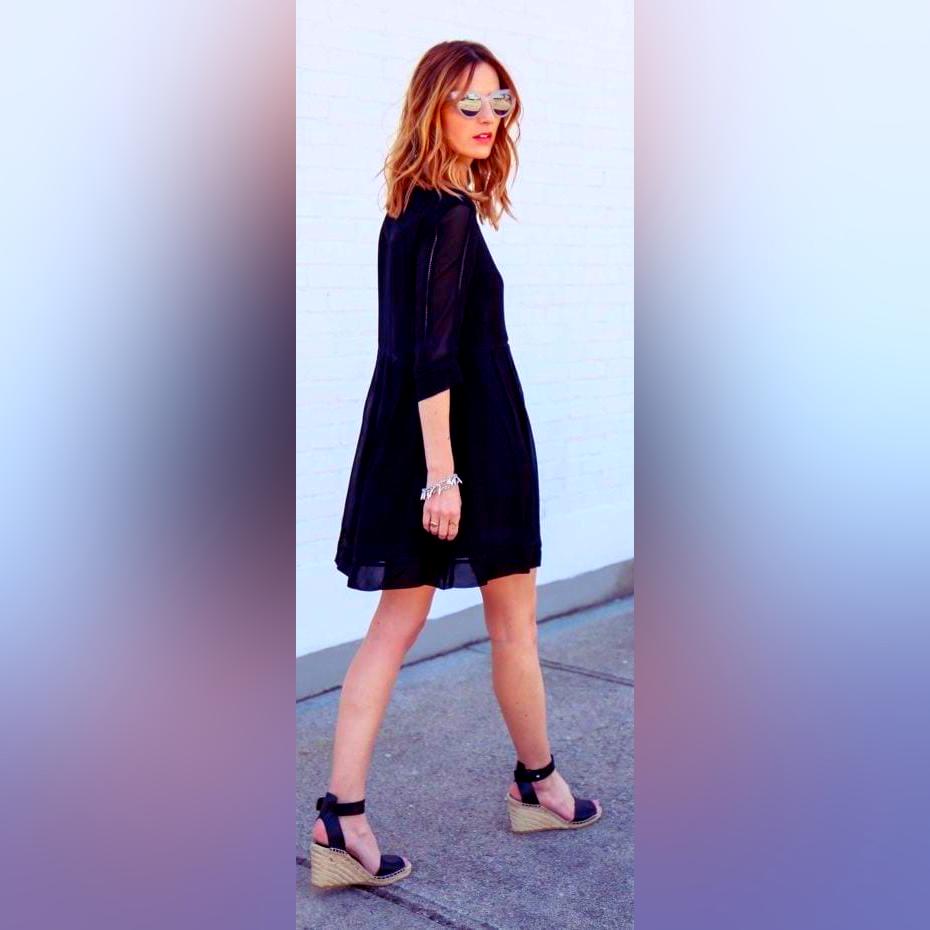 This outfit is simply by it can get–a set of black espadrilles and a maxi dress. This look is about being comfortable while looking stylish, so rock results or to spend time with friends!