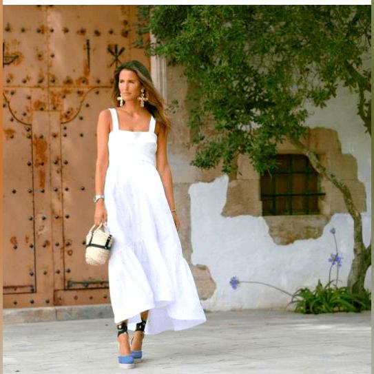 This outfit is perfect for the times when you want to look super-chic and classy without having to look too over the top. White espadrilles could be combined with a casual maxi dress for any simple look that works well for wearing to work or for your entire day out!
