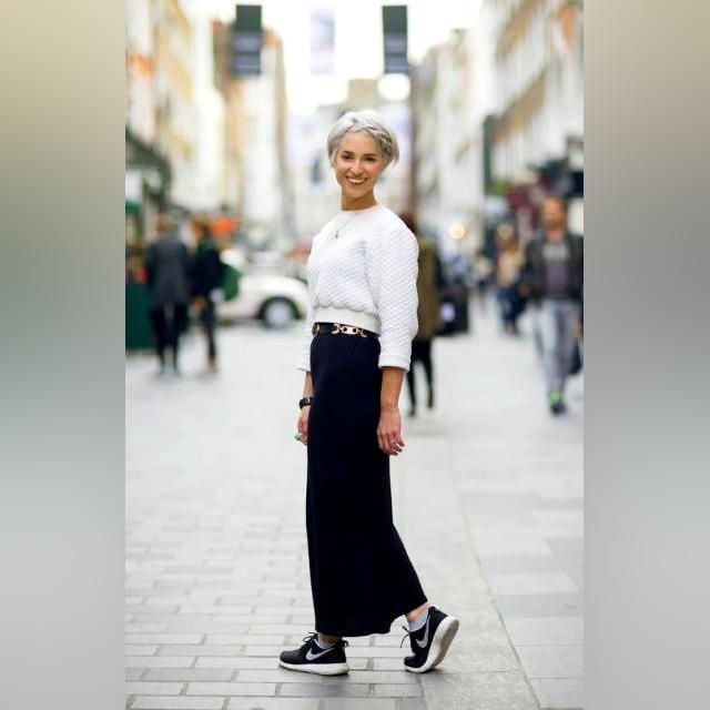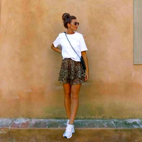Go in the city to meet your pals with this smart look. The light-colored sneakers are perfect shoes to combine with these skirts. It’s rather comfortable sneakers for errands, for travelling the town and it’s probably the most popular kinds of sneakers.