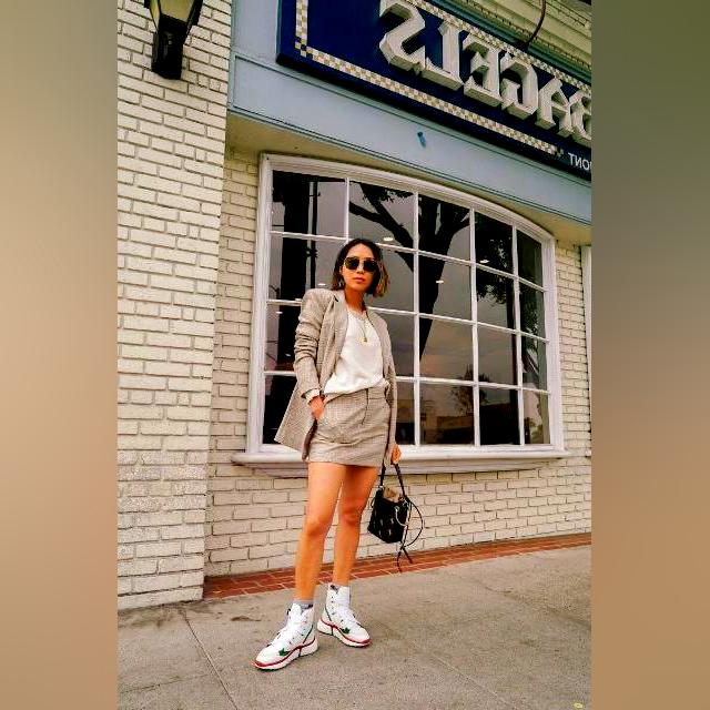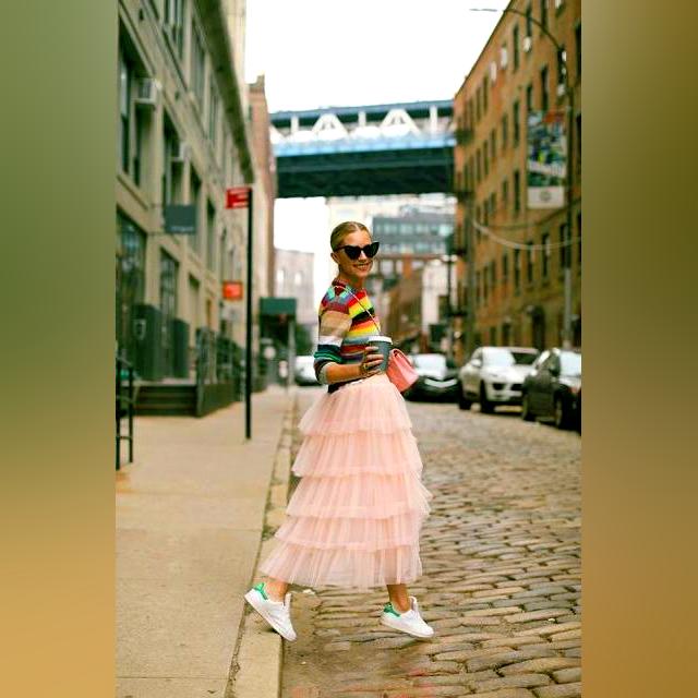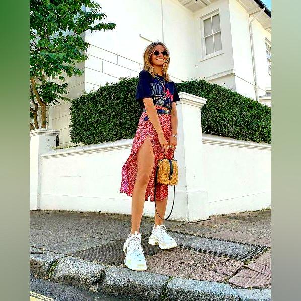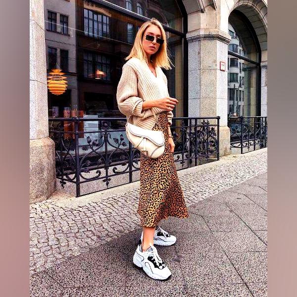 It’s a really feminine and elegant combination that can make the outfit more diverse and elegant. Sneakers are perfect for this look. Be careful, don’t go crazy!