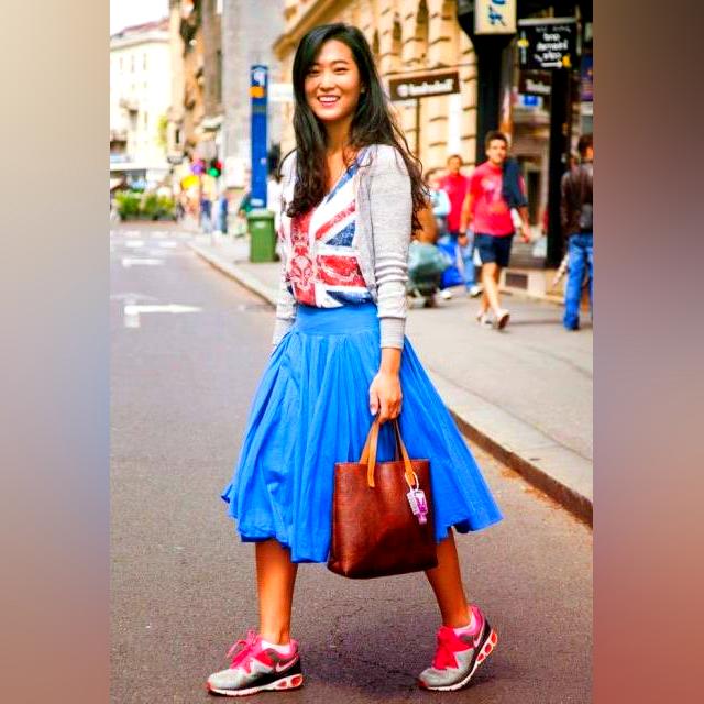 How to mix skirts with sneakers? The best way is to wear a nice skirt and top having a set of casual athletic shoes. By doing this you look feminine however, you can continue to run when needed. Some girls will placed on their sporty jacket or sweater over and the last thing may be the sneakers, but I recommend to start out of your shoes.